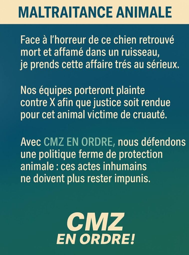 Face à cette horreur, CMZ en Ordre affirme une position claire : tolérance zéro contre la maltraitance animale.